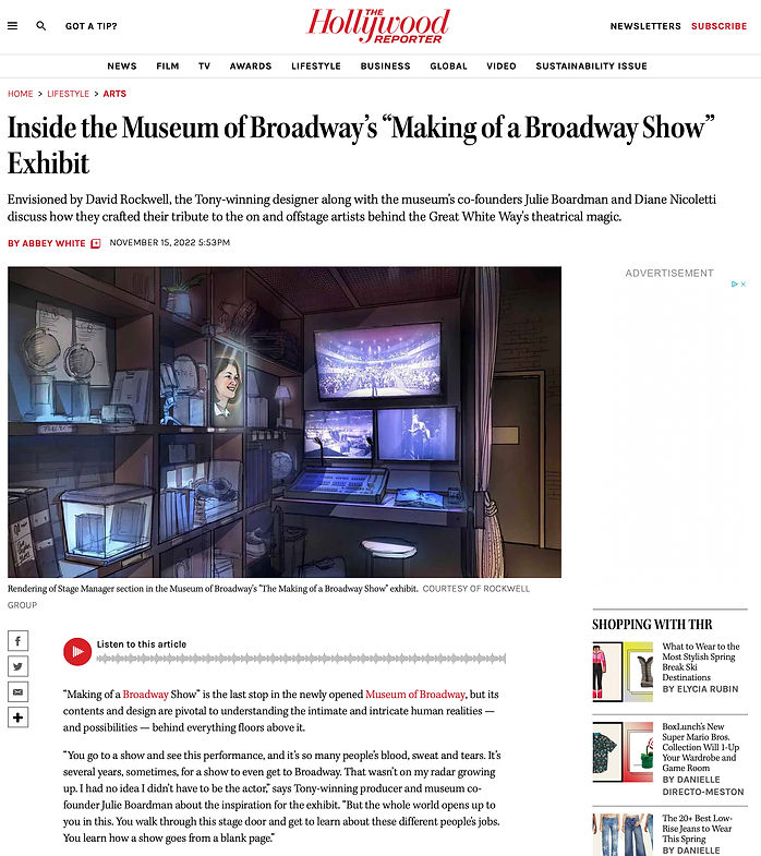 “The designer and his Rockwell team (Daniel Marino, Andrew Lazarow, Eda Yetim, Furqan Jawed, Alex Huffman and Antonio Harris), along with decorator and props supervisor Faye Armon-Troncoso, video director and editor Nolan Doran and associate editor Karl Sonnenberg, helped shape not just what occupies the space but how visitors will navigate it.”